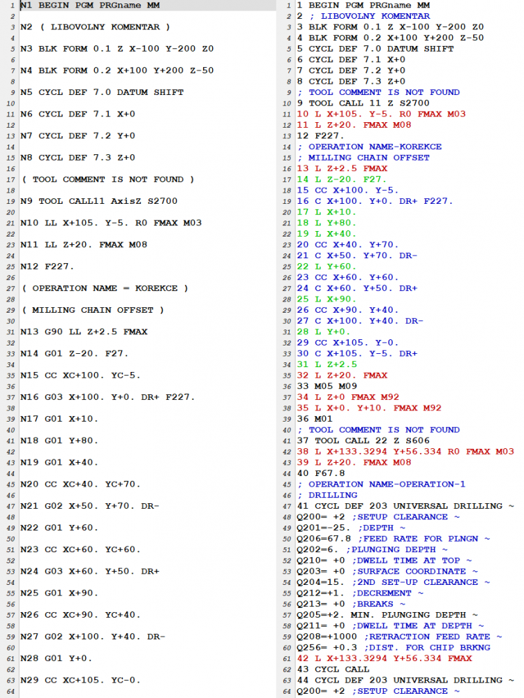 We have created a universal application that changes the format of any NC code according to predefined rules. The original task was to create a converter from ISO to iTNC530 to the TurboCAD system and its CAM superstructure.